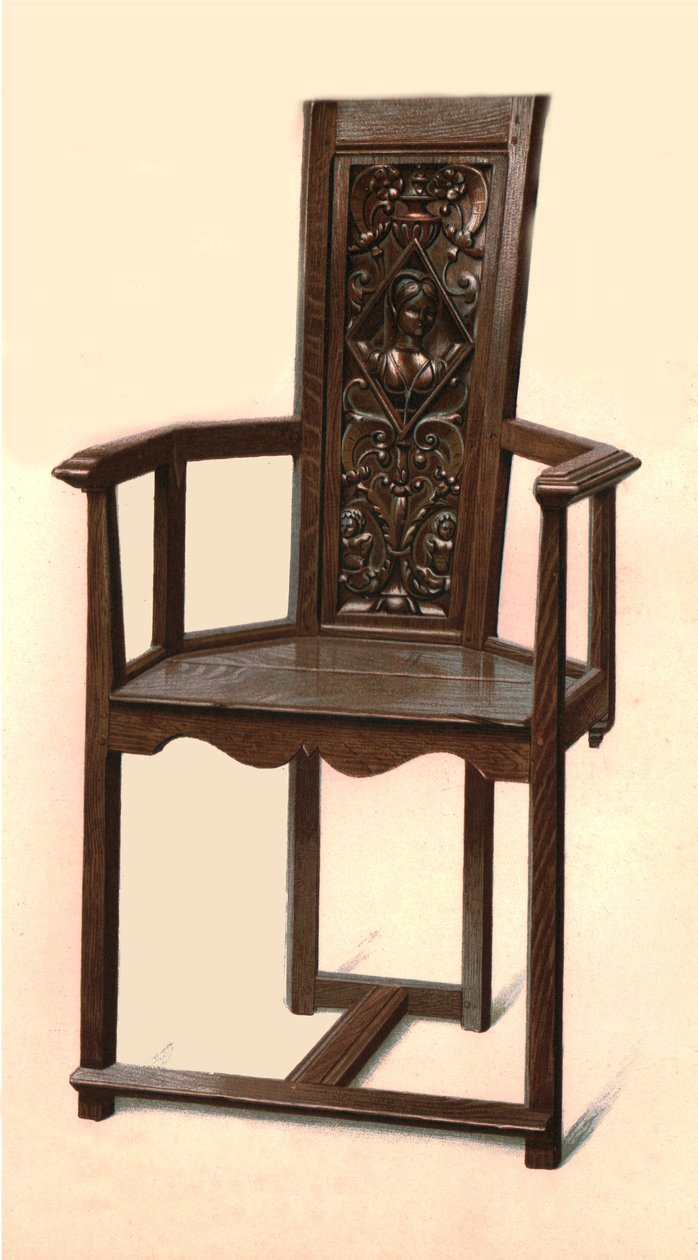 england · wood · country · british · english · color · colour · design · decoration · wooden · chair · craftsmanship · carved · location · britain · furniture · concept · lithograph · object · percy · shirley slocombe · slocombe · shirley · percy macquoid · macquoid · percy thomas macquoid · percy t macquoid · The Print Collector/Heritage Images |
