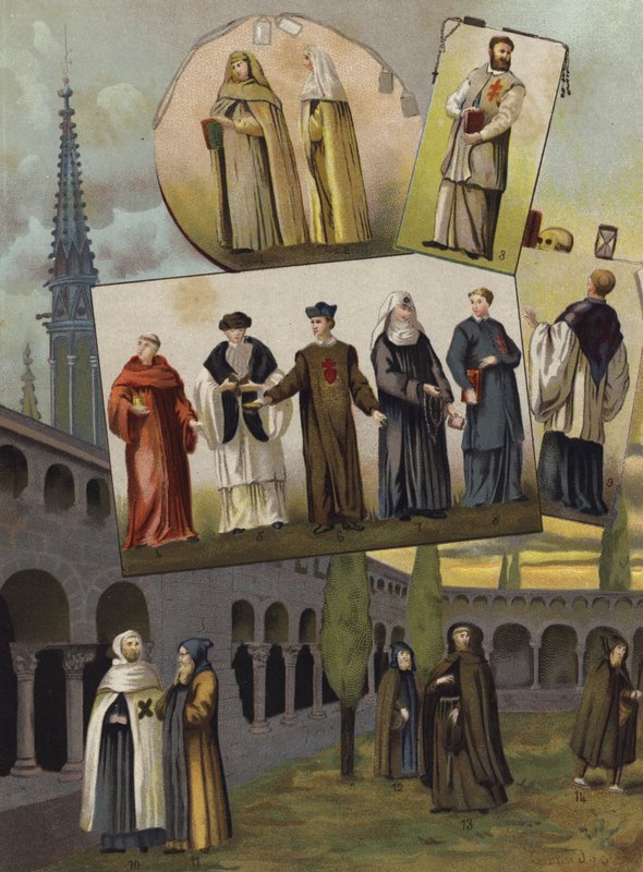 history · religion · christianity · religious orders · costume · catholic · 16th century · habit · monks · friars · nuns · priests · clergy · church · cloisters · Private Collection / Bridgeman Images · / Look and Learn |