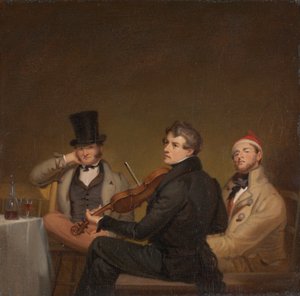 fireside · gentlemen · violinist · violin · cello · trio · chamber music · oboe · clarinet · music stand · Towneley Hall Art Gallery and Museum, Burnley, Lancashire / Bridgeman Images |