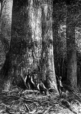 nature · forest · tree · people · male · plant · plants · australia · australian · country · gum tree · eucalyptus · giant · location · century · graffiti · concept · monochrome · 19th century · black white · black and white · bw · nineteenth century · trees · engraving · taylor · The Print Collector/Heritage Images