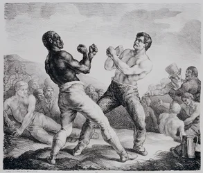 caucasian · people · black · male · sport · hand · country · french · france · body · bodies · white · museum · boxer · fighting · boxing · location · century · physique · muscular · muscles · fist · fists · boxers · muscle · topless · pugilist · boxing ring · clenched fist · the met · metropolitan museum of art · the metropolitan museum of art · 19th century · black white · black and white · boxing match · nineteenth century · the body · bare-knuckle boxing · lithograph · theodore gericault · gericault · theodore · gericault · jean louis andre · géricault · théodore · théodore géricault · heritage art · géricault · jean-louis-andré-théodore · gericault · jean-louis-andre-theodore · jean-louis-andre-theodore gericault · théodore gericault · jean-louis-andré-thé · Heritage Art/Heritage Images