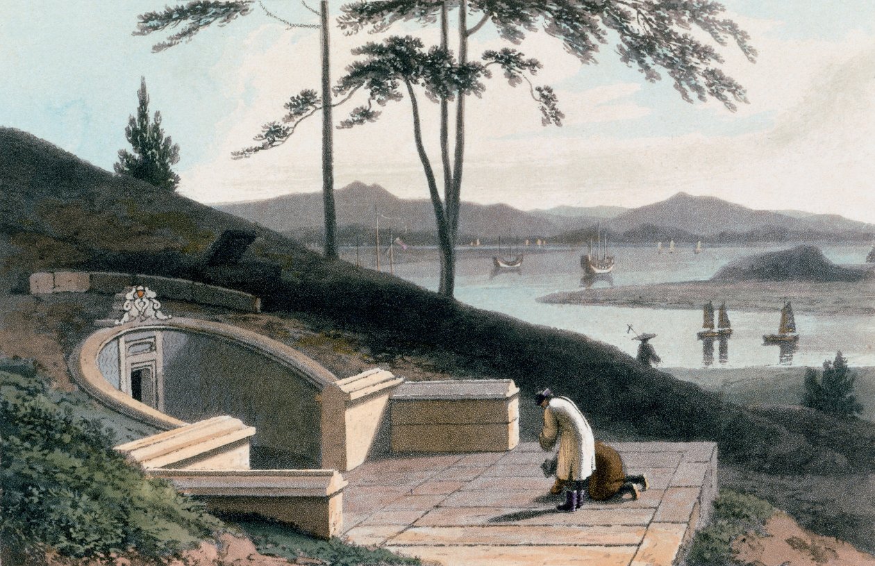 Chinese Tomb with Two Mourners Outside the Stone Entrance, from 'A Picturesque Journey to India, by the Way of China', 1810(Chinese tomb with two mourners outside the stone entrance, from 'A Picturesque Journey to India, by the Way of China', 1810 )Thomas und William Daniell |