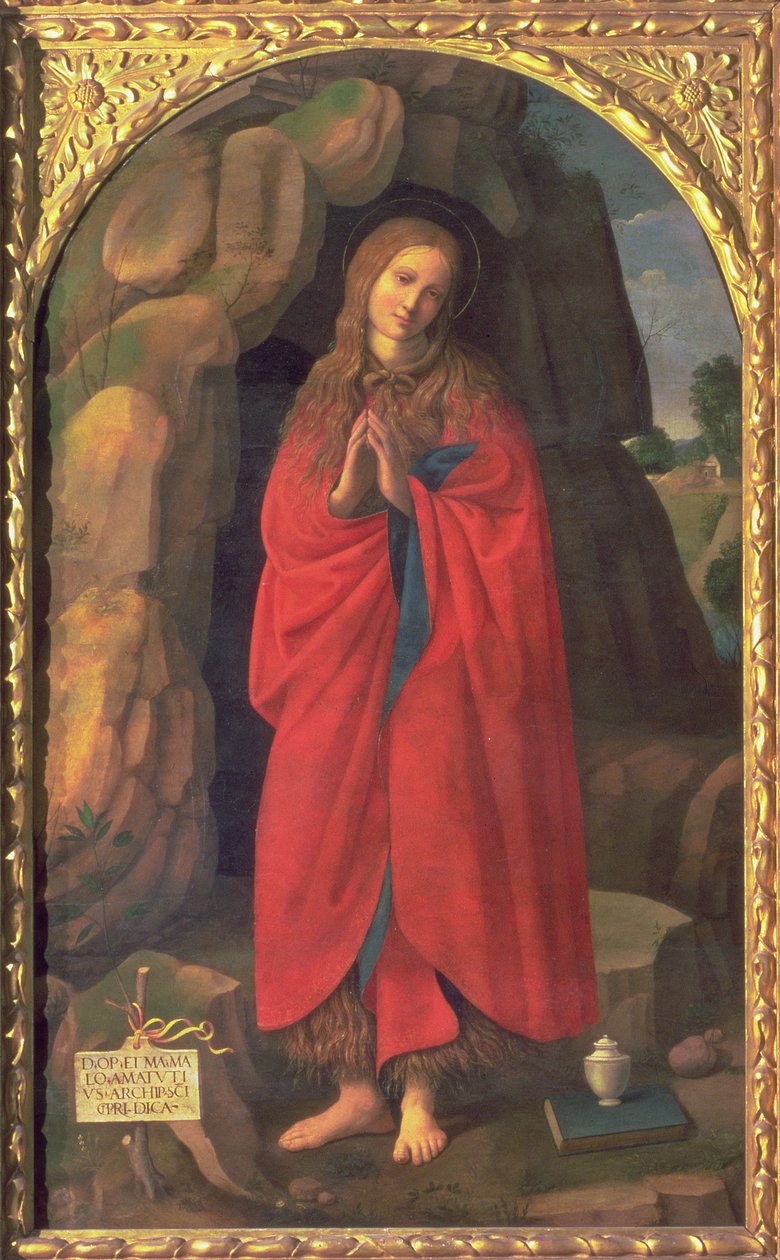 renaissance · female · red cloak · hair shirt · precious ointment · sainte · marie madeleine · marie-madeleine · Palazzo Ducale, Urbino, Italy / Bridgeman Images |