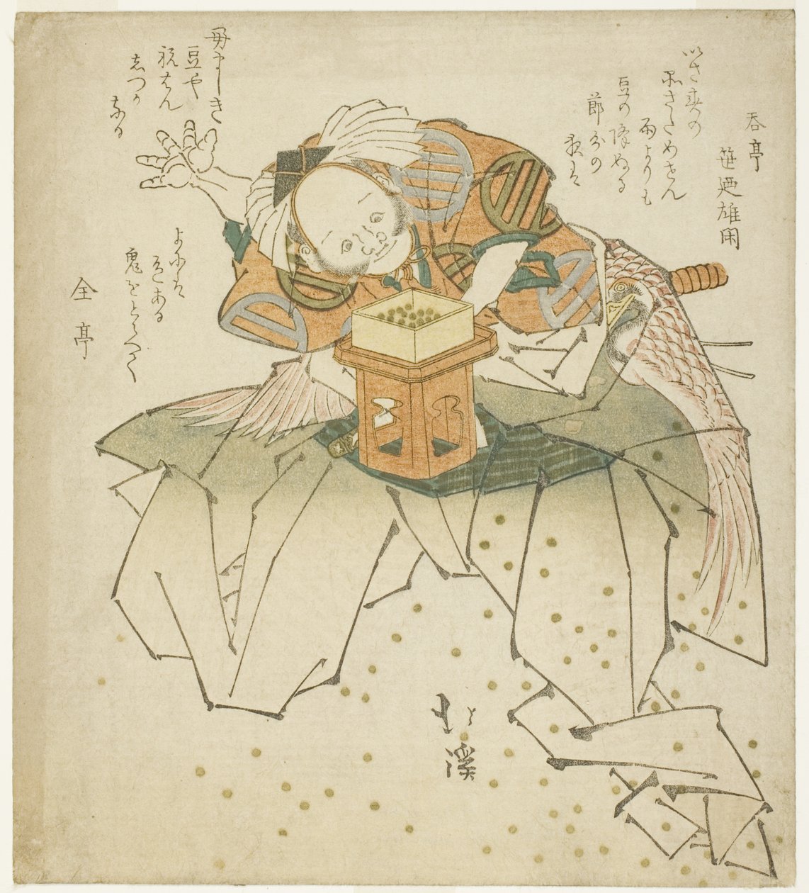 Asahina Saburo throwing beansTotoya Hokkei |