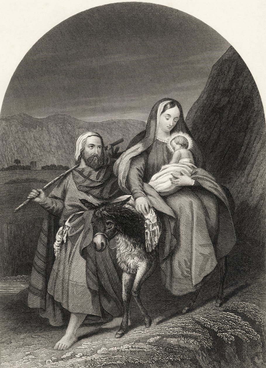 holy family · virgin mary · madonna · jesus christ · joseph · donkey · fleeing · travelling · Private Collection / Bridgeman Images