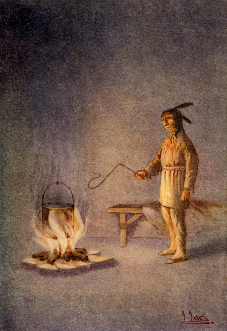 north america · people · male · interior · arts · night · local · book · cooking · cookery · fire · color · native · native american · location · century · inside · literature · legend · myth · whip · north american · time of day · one person · american indian · kettle · whipping · colour · indoors · legendary · 1910s · 20th century · iroquois · cooking pot · indigenous · portrait · unknown · spence · lewis · g g harrap co · harrap · gg harrap co · lewis spence · james lewis thomas chalmbers spence · george g harrap co · g g co · gg co · myths of the north american indians · george g harrap company · george harrap company · The Print Collector/Heritage Images |
