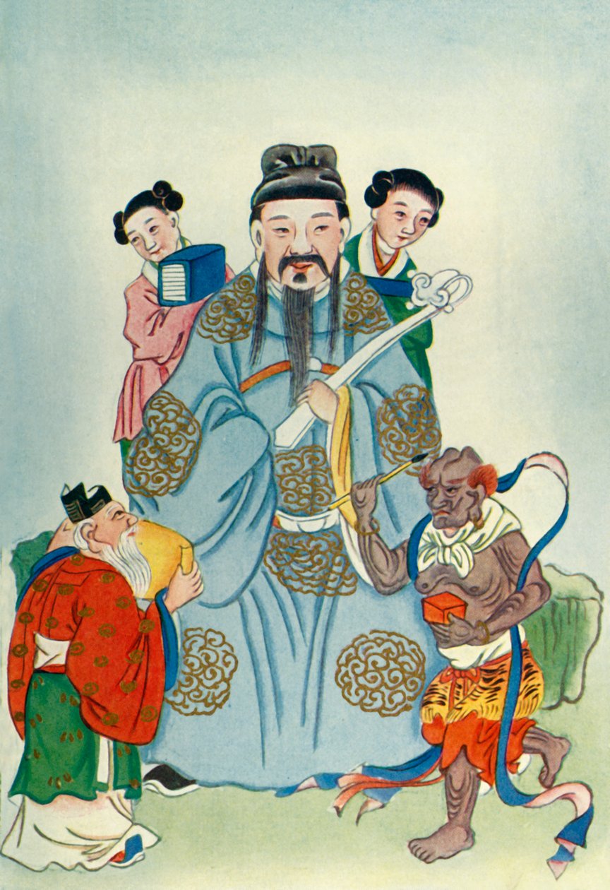 blue · female · edward tc werner · werner · edward werner · quing dynasty · george g harrap co · g g co · gg co · myths and legends of china · edward tc · etc werner · edward theodore chalmers werner · k'uei hsing · wen ch'ang · wenchang wang · chu i · women · woman · people · male · group · religious · oriental · education · arts · country · religion · china · chinese · book · costume · occupation · clothes · color · decorative · robes · robe · official · dress · traditional costume · deity · location · century · examination · profession · clothing · literature · dynasty · concept · attendant · mythology · twenties · qing dynasty · scroll · goddess · servant · colour · poet · 1920s · 20th century · daoism · servants · taoism · culture · kui xing · taoist · the god of literature · traditional dress · bo juyi · illustration · portrait · unknown · juyi · bo letian · bai juyi · po chu-i · g g harrap co · harrap · gg harrap co · The Print Collector/Heritage Images |