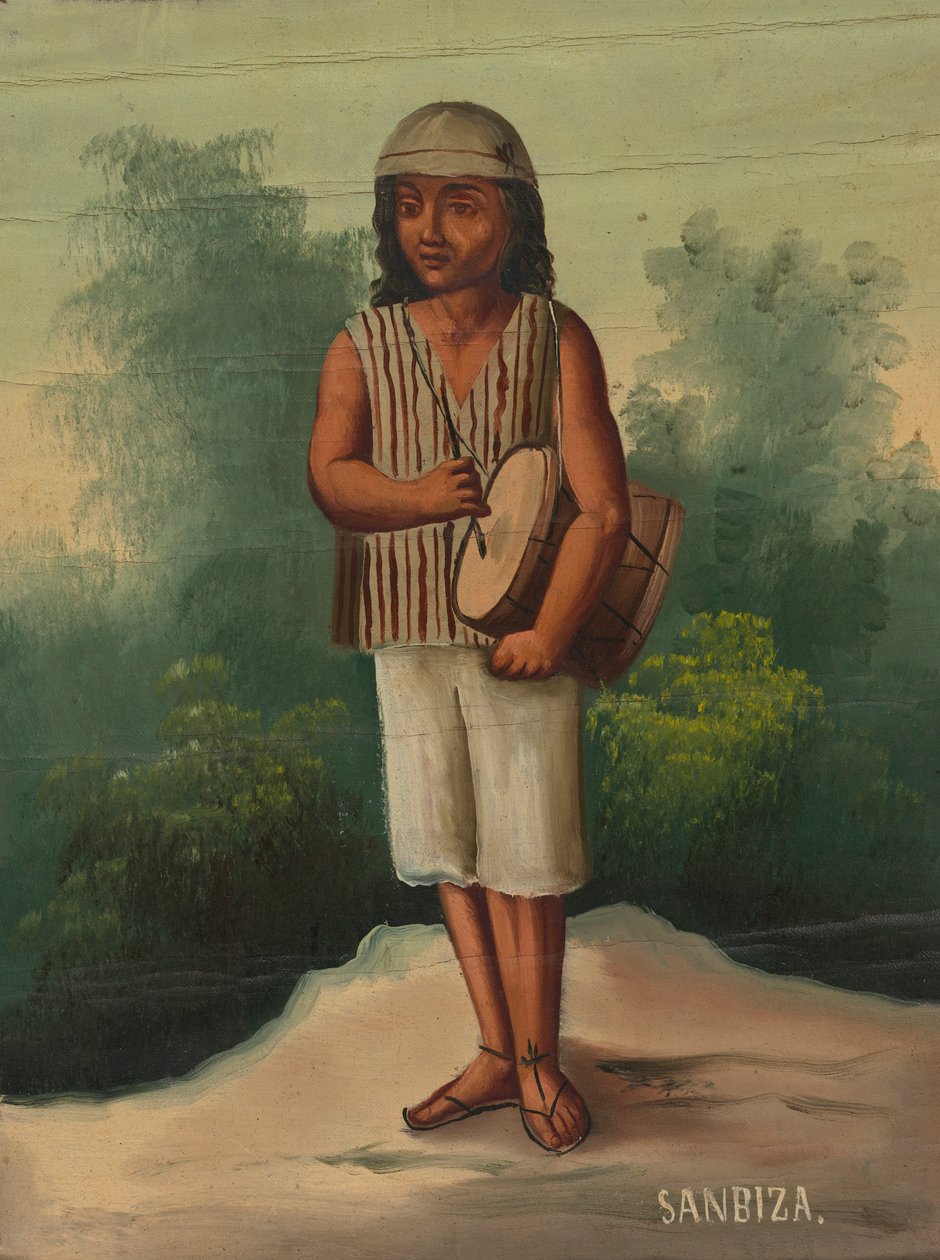 south america · people · male · boys · music · education · arts · painting · local · musician · costume · drum · drummer · continent · clothes · color · dress · traditional costume · native · native american · south american · location · century · musical instrument · musical instruments · clothing · full length · american indian · full-length · oil painting · colour · smithsonian institution · educational institution · 1900s · 20th century · amerindian · scientific institution · traditional dress · indigenous · indigenous people · unknown · oil on canvas · painting · heritage art · smithsonian american art museum · Heritage Art/Heritage Images |