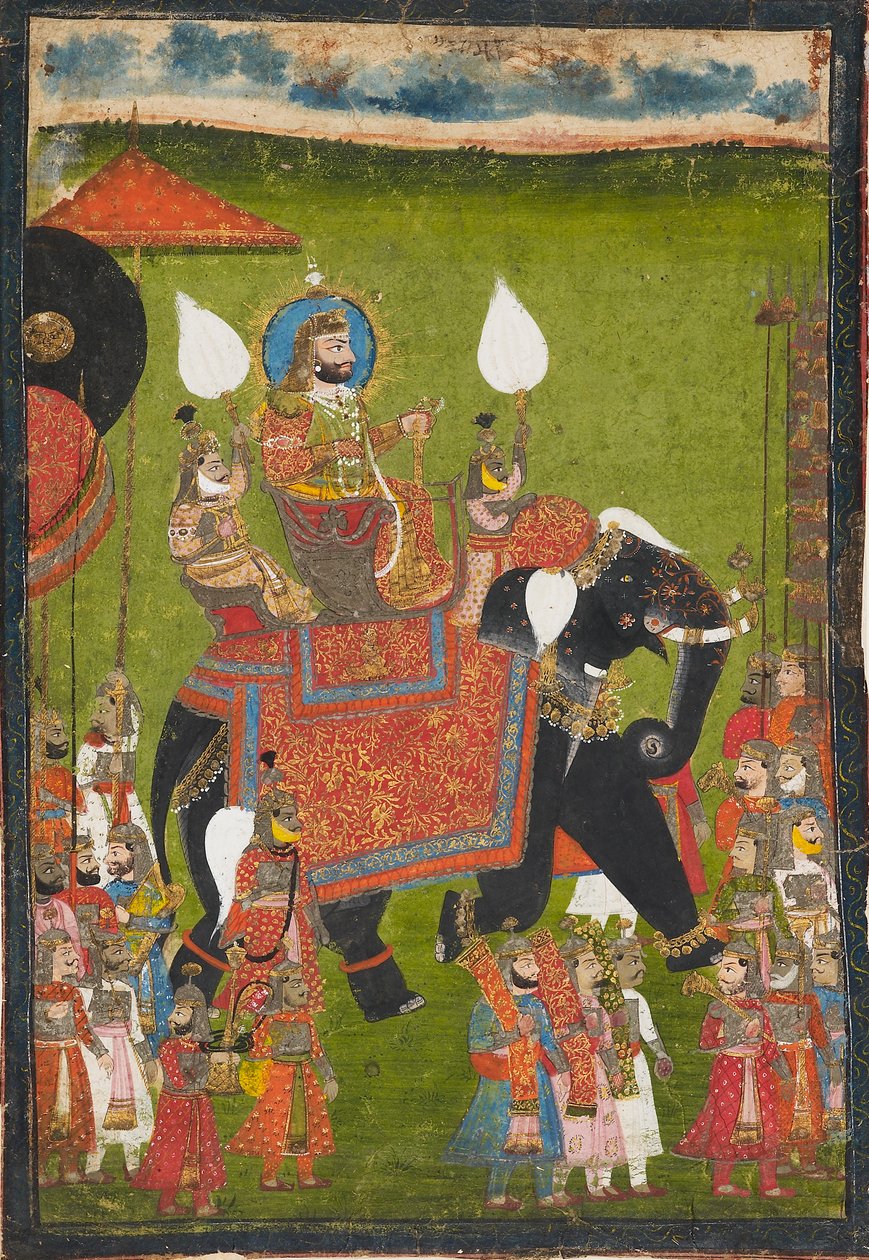 exterior · outdoors · animal · tall · people · black · male · asian · rajasthan · india · asia · indian · arts · painting · country · monarch · green · continent · color · colour · colourful · elephant · king · royal · location · century · royalty · outside · attendant · gouache · udaipur · 19th century · nineteenth century · hindoostan · sovereign · portrait · unknown · singh · green colour · maharana · maharaja jawan singh · maharaja jawan · jawan singh · maharana jawan singh of mewar · mewar · black colour · his majesty · ashmolean museum · Ashmolean Museum, University of Oxford/Heritage Images |