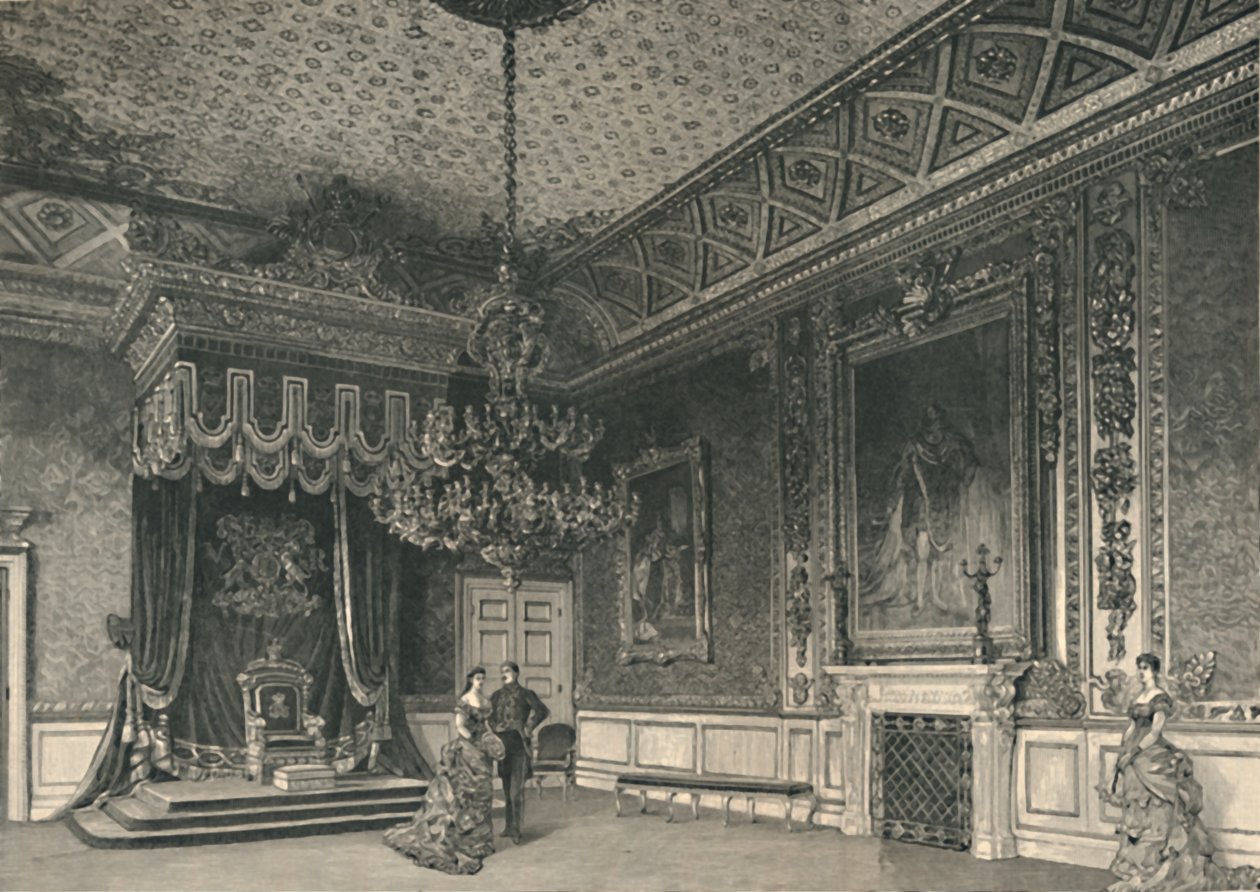 building · buildings · interior · indoors · architecture · british · room · palace · victorian · century · architectural · britain · inside · interior design · monochrome · interior decoration · 19th century · black white · black and white · throne · nineteenth century · st jamess palace · throne room · h n king · engraving · unknown · hn king · king · king · h n · king · h.n. · h. n. king · h.n. king · The Print Collector/Heritage Images |