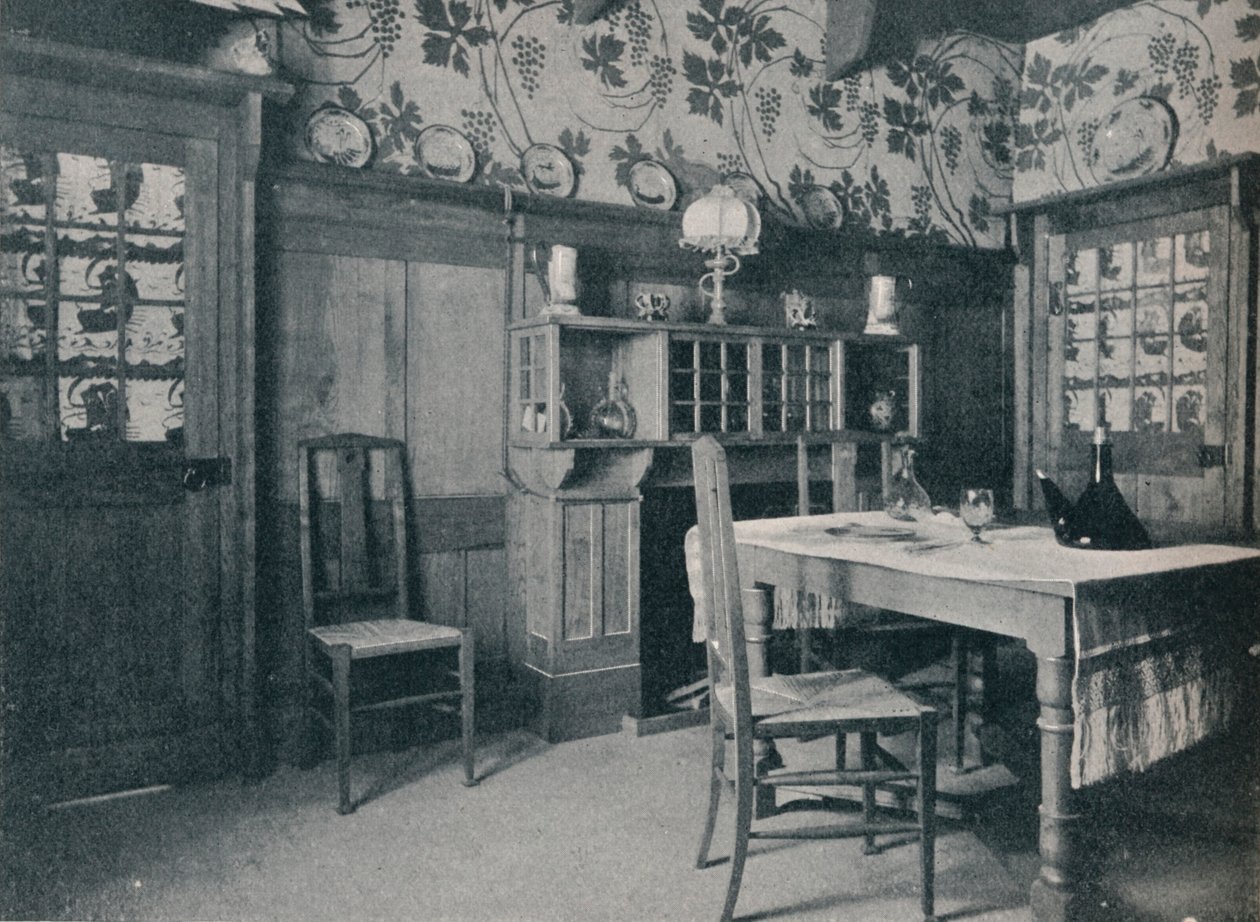 interior · indoors · room · table · chair · century · inside · interior design · furniture · dining table · exhibition · dining room · monochrome · wallpaper · publication · interior decoration · decorative arts · black white · black and white · dining-room · 1900s · 20th century · photograph · unknown · arturo · studio publications · studio volume 27 · international exhibition of modern decorative and industrial arts · 1925 · arturo issel · issel · The Print Collector/Heritage Images |