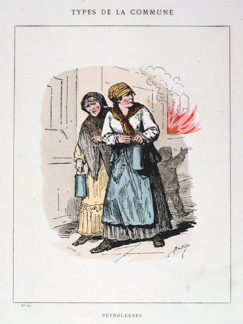 female · women · woman · people · male · politics · country · french · france · crime · fire · color · colour · petrol · location · century · rebellion · revolution · lady · arson · cartoon · arsonist · 19th century · 1870s · nineteenth century · revolutionary · art media · paris commune · anon · anonymous · Art Media-Private Collection/Heritage Images