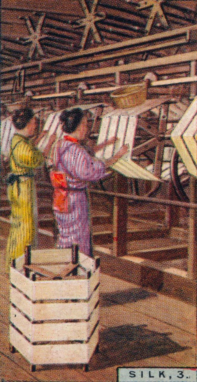 female · women · woman · people · industry · color · colour · japan · machine · machinery · text · illustration · century · fabric · silk · lady · twenties · reeling · 1920s · 20th century · cigarette card · industrial machinery · western script · unknown · cigarette card · john player sons · player · john sons · The Print Collector/Heritage Images |