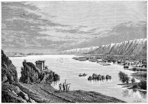 transport · transportation · river · water · india · boat · boats · reflection · geography · victorian · century · uttar pradesh · river ganges · monochrome · 19th century · water transport · black white · black and white · nineteenth century · yamuna · cawnpore · geographical feature · kanpur · river jumna · river yamuna · engraving · landscape · unknown · river jamuna · jamuna · robert · wilson · robert wilson · The Print Collector/Heritage Images |