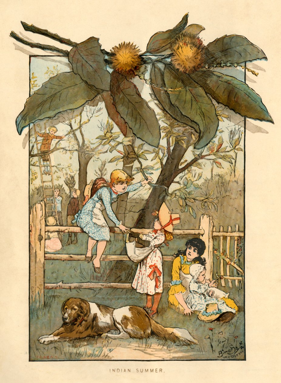 nature · animal · tree · season · female · people · childhood · child · children · girl · girls · summer · plant · plants · baby · babies · country · climbing · color · deciduous · foliage · conker · location · century · collecting · horse chestnut · publication · united states of america · colour · 19th century · seed pod · nineteenth century · st nicholas · american · trees · america · aesculus hippocastanum · illustration · united states · unknown · aesculus hippocastorum · scribner co · The Print Collector/Heritage Images |