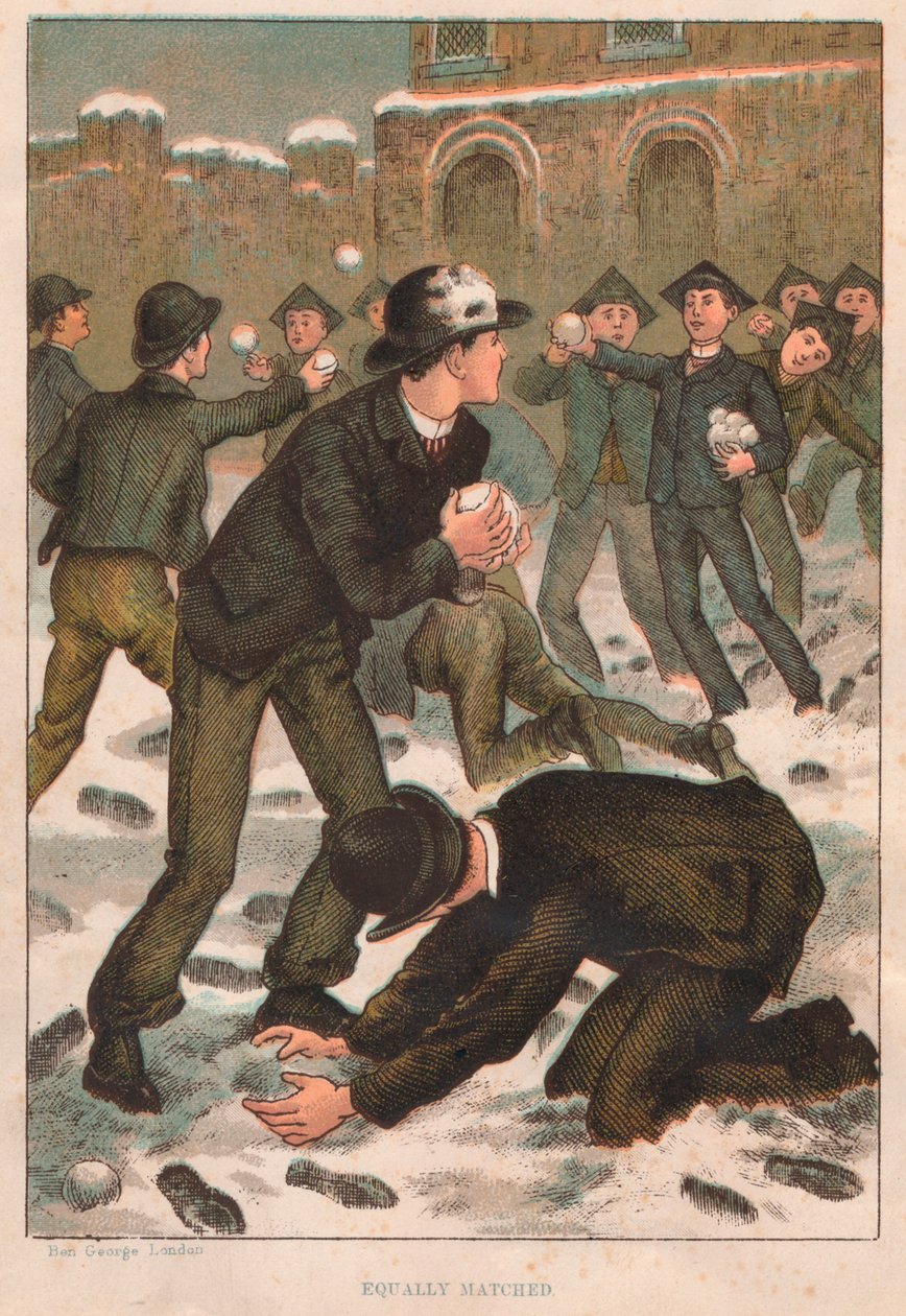 weather · season · people · male · boys · child · children · education · snow · british · school · color · footprint · footprints · throwing · schoolchildren · victorian · century · britain · schoolchild · snowball · snowball fight · schoolboy · schoolboys · wintry · colour · 19th century · nineteenth century · genre scene · winter · engraving · unknown · george · ben george · ben · The Print Collector/Heritage Images |