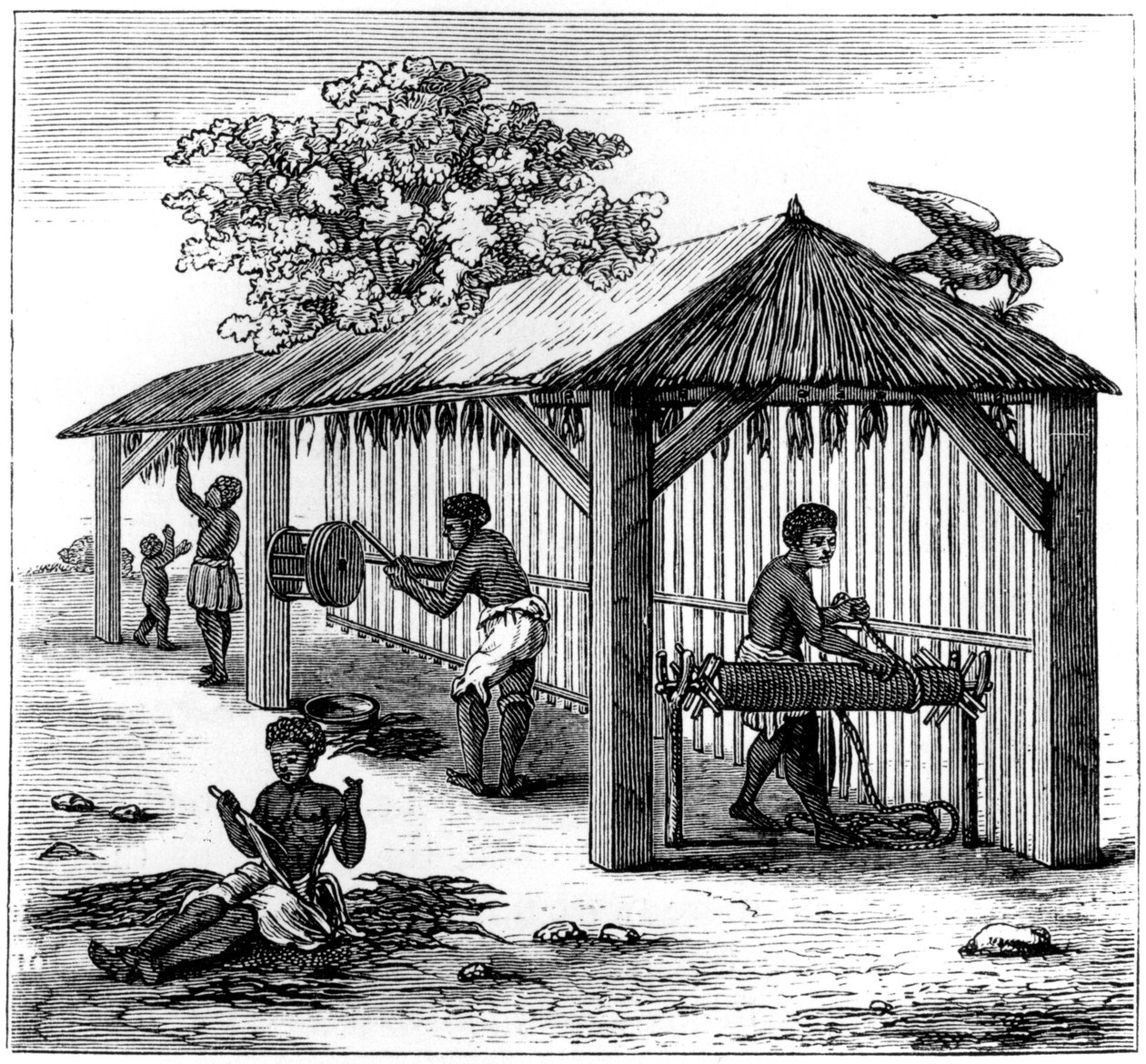 building · buildings · agriculture · people · working · work · farming · greater antilles · west indies · indies · caribbean · location · dominican republic · hispaniola · tobacco · concept · slavery · monochrome · santo domingo · slave · black white · black and white · west indian · art media · slave labour · engraving · unknown · samuel · samuel hazard · hazard · Art Media/Heritage Images