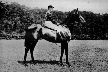 exterior · animal · holding · people · black · male · sport · sports · animals · horses · horse · jockey · arts · book · british · color · colour · reins · century · britain · races · sportsmen · sportsman · horse racing · literature · horseback · outside · one person · stallion · horse race · monochrome · thoroughbred · racehorse · 19th century · black white · black and white · 1910s · 20th century · nineteenth century · pretender · horse-race · horse-racing · 1st baronet · epsom derby · unknown · william · robert · thomas · jardine · 2000 guineas · black colour · british sports and sportsmen · dawson · thomas dawson · william sadler · sadler · robert jardine · sir robert jardine · The Print Collector/Heritage Images