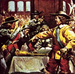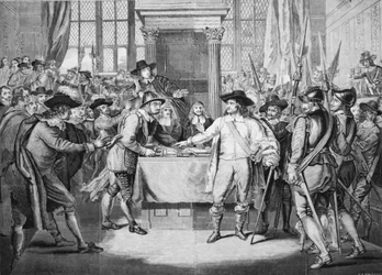 people · male · politics · clothes · british · weapon · weapons · dramatic · parliament · dress · armour · century · sword · britain · soldiers · soldier · swords · concept · chaos · house of commons · monochrome · politician · warfare · 17th century · chaotic · mace · suit of armour · black white · black and white · weaponry · pike · 1900s · 20th century · statesman · turmoil · seventeenth century · lord protector · member of parliament · parliamentarian · oliver cromwell · benjamin · portrait · unknown · oliver · wright · smith · philip · lord protector of the commonwealth · lord protector · cromwell · arnold wright · arnold · philip smith · benjamin west · west · The Print Collector/Heritage Images