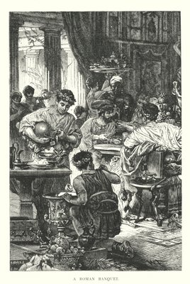 italy · food · drink · people · male · interior · arts · relaxation · country · rome · relaxing · book · occupation · alcohol · abundance · wine · ancient · roman · location · century · conversation · profession · inside · literature · concept · plenty · couch · conversing · banquet · feast · slavery · servant · monochrome · slave · 19th century · indoors · black white · black and white · ancient rome · nineteenth century · servants · history · historic · feasting · illustration · engraving · unknown · cassells · edmund · cassell co · edmund ollier · ollier · cassell and company ltd · cassell company · cassell · cassells illustrated universal history · The Print Collector/Heritage Images