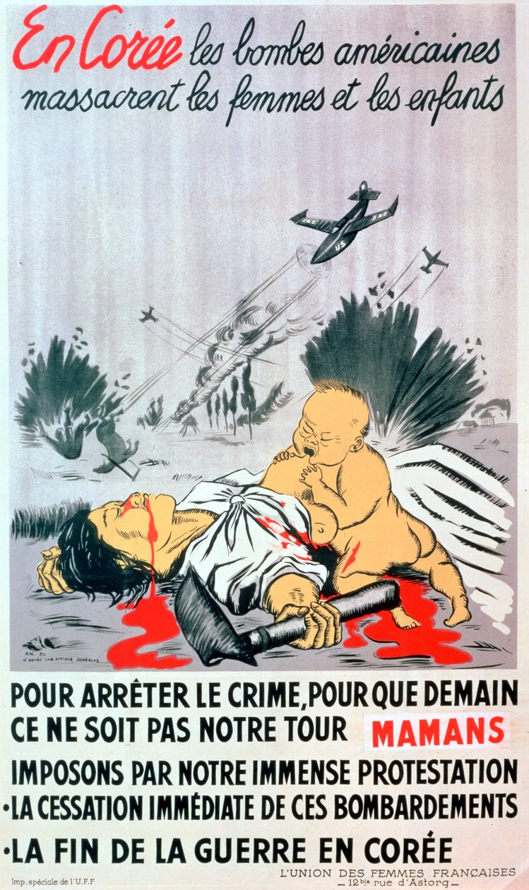 transport · transportation · female · women · woman · people · child · children · family · politics · country · french · france · body · korea · color · colour · dead · mother · death · aeroplane · aircraft · plane · airplane · explosion · korean · motherhood · location · century · victim · casualty · lady · concept · grief · poster · bomber · corpse · killed · warfare · fifties · 1950s · air transport · cold war · bombing · korean war · 20th century · civilian · civilians · propaganda · art media · aerial warfare · anti-war · decade · pacifism · pacifist · the body · poster · unknown · Art Media/Heritage Images |