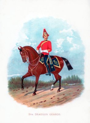 animal · people · male · animals · horses · horse · riding · rider · british · color · colour · uniform · dress · horseman · horsemen · victorian · century · helmet · britain · soldiers · soldier · concept · cavalry · life guards · life guard · army · warfare · regiment · 19th century · british army · nineteenth century · cavalry officer · chromolithograph · unknown · The Print Collector/Heritage Images