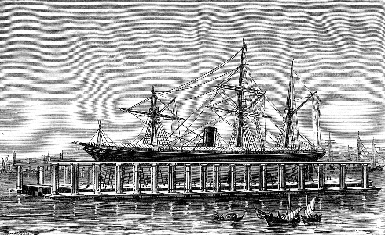 transport · transportation · water · india · industry · harbour · ship · ships · british · geography · industrial · wharf · docks · dock · lift · location · victorian · century · bombay · mumbai · maharashtra · britain · elevator · monochrome · hydraulic · 19th century · water transport · black white · black and white · nineteenth century · geographical feature · hydraulic lift docks · engraving · unknown · edwin · clark · edwin clark · The Print Collector/Heritage Images |