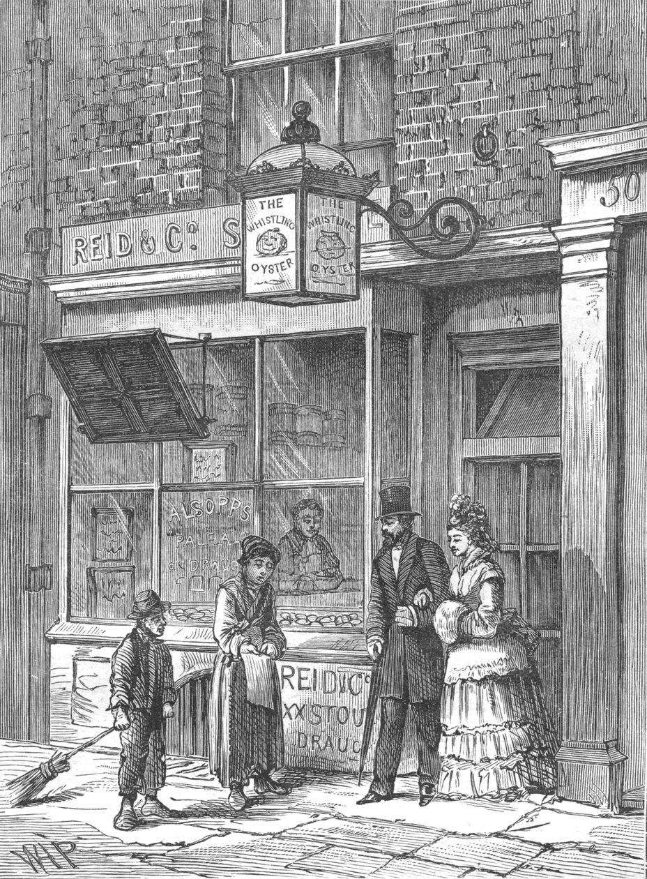 outdoors · wealth · road · london · england · female · women · woman · people · male · boys · architecture · street · shopping · shop · shops · occupation · lane · lighting · contrast · avenue · pavement · sidewalk · poor · poverty · wealthy · shop front · location · century · lantern · shellfish · profession · lady · concept · oyster · whistling · monochrome · street seller · publication · aquatic life · 19th century · black white · black and white · nineteenth century · historic · street trader · engraving · portrait · old and new london · unknown · edward · walford · co · cassell co · cassell · edward walford · cassell and company ltd · The Print Collector/Heritage Images |