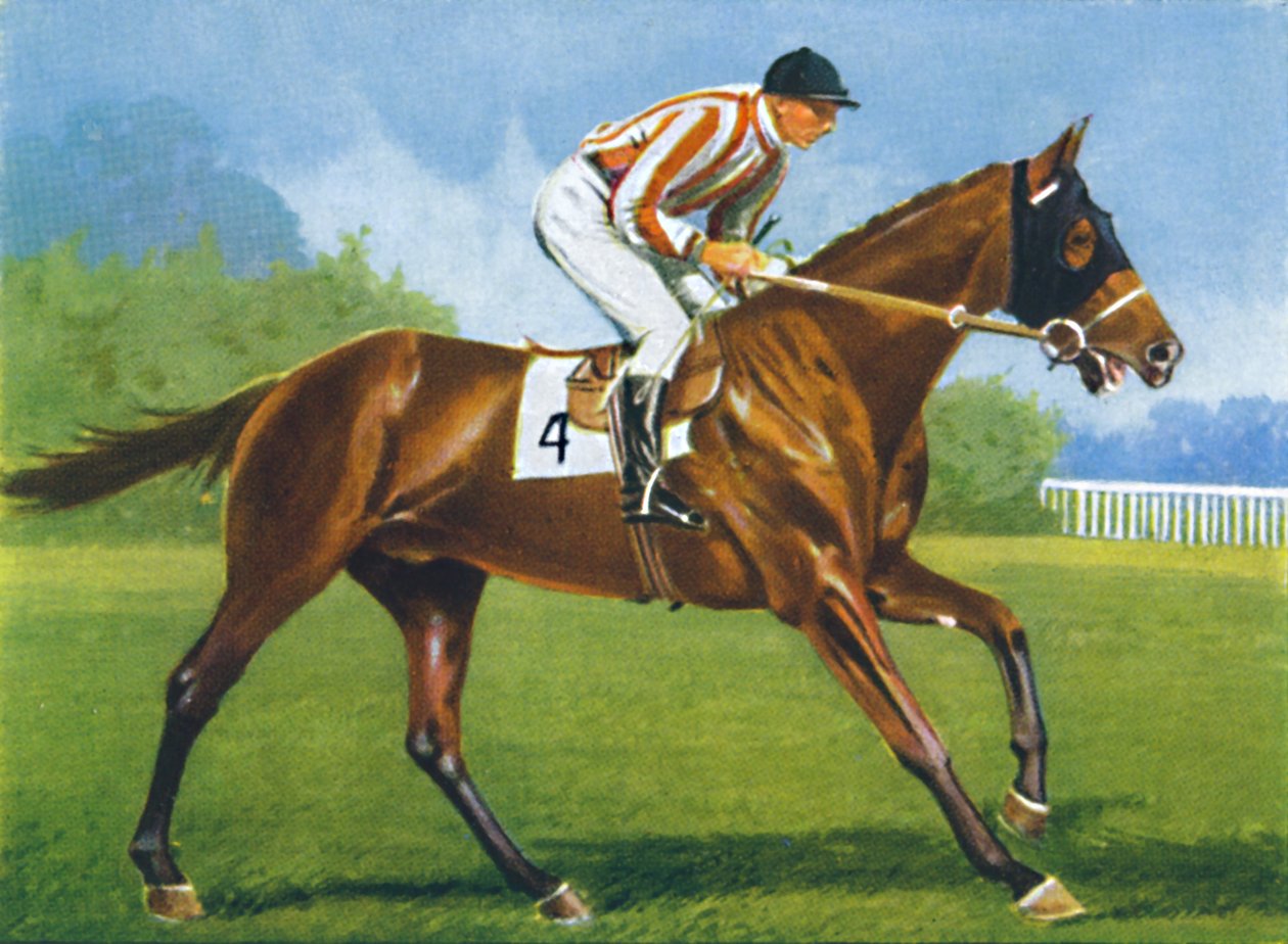 portrait · side view · animal · people · male · sport · sports · animals · horses · horse · riding · rider · jockey · orange · country · white · grass · headdress · color · colour · brown · profile · ireland · irish · winning · stripe · number · dress · location · century · winner · clothing · thirties · sportsmen · sportsman · silks · horseback · concept · colt · headgear · thoroughbred · racetrack · united states of america · united states · unbreakable · racehorse · 1930s · orange colour · 20th century · american · america · number 4 · white colour · unknown · cigarette card · wd ho wills · wills · wd ho · wd and ho wills · pat beasley · beasley · waterford stakes · The Print Collector/Heritage Images