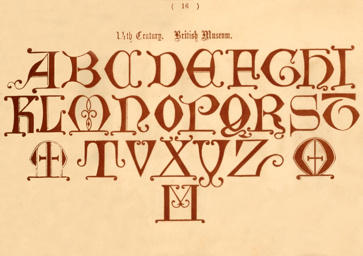 writing · museum · ornamental · medieval · text · british museum · century · alphabet · concept · script · lettering · font · 19th century · middle ages · 14th century · fourteenth century · nineteenth century · unknown · freeman gage delamotte · delamotte · freeman gage · The Print Collector/Heritage Images