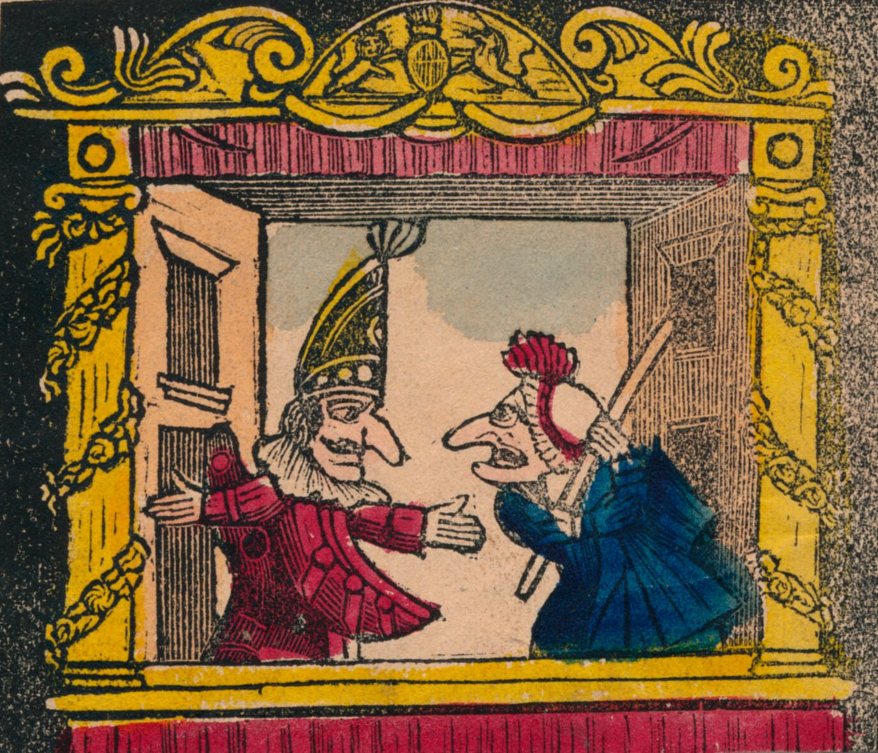 england · country · marriage · entertainment · theatre · english · traditional · color · location · century · argument · arguing · puppet · puppets · concept · punch · typical · wives · wife · husband · punch and judy · puppet show · punch judy · colour · 19th century · 18th century · eighteenth century · nineteenth century · mr punch · punchinello · engraving · unknown · The Print Collector/Heritage Images |
