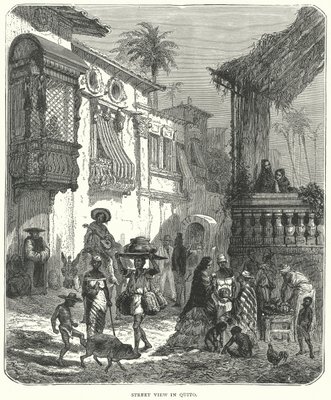 La casa de la Merced (now Mercy Street) in Saint Augustine, the oldest city in the United States, founded by the Spaniards in 1565; main street of the city, small and populous, with various animals and a singular blend of various American t(La casa de la Merced (now Mercy Street) in Saint Augustine, the oldest city in the United States (United States), founded by the Spaniards in 1565; main street of the city, small and populous, with various animals and a singular blend of various American t)Unknown artist |