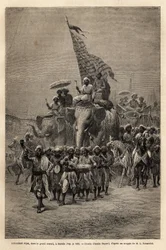 The royal banner, in the sowari (military procession), in Baroda (or Vadodara), state of Gujarat on the north-east coast of India. Engraving to illustrate the voyage in India of the Rajahs(The royal banner, in the sowari (military procession), in Baroda (or Vadodara), state of Gujarat on the north-east coast of India. Engraving to illustrate the voyage in India of the Rajahs, by Louis Rousselet, in 1864-1868, published in “” Le tour du monde)Unknown artist |