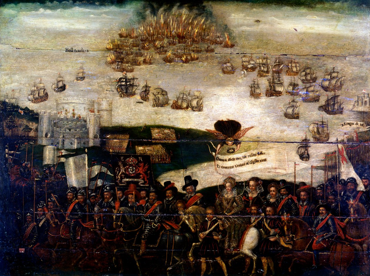 england · united kingdom · europe · army · naval battle · battle · colour · elizabeth i queen of england (1533-1603) · house of tudor · spain · history · coast · navy · painting · queen · royalty · mzpainting · spanish armada · 16th century · · / Bridgeman Images |