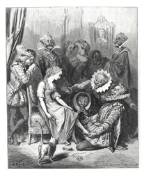 Esmeralda and Fleur de Lys. Illustration of 'Notre Dame de Paris' by Victor Hugo. Engraving Late 19th Century(Esmeralda and Fleur de Lys (Fleur-de-Lys). Illustration of “Notre Dame de Paris” by Victor Hugo (1802-1885). Engraving late 19th century.)Unknown artist |