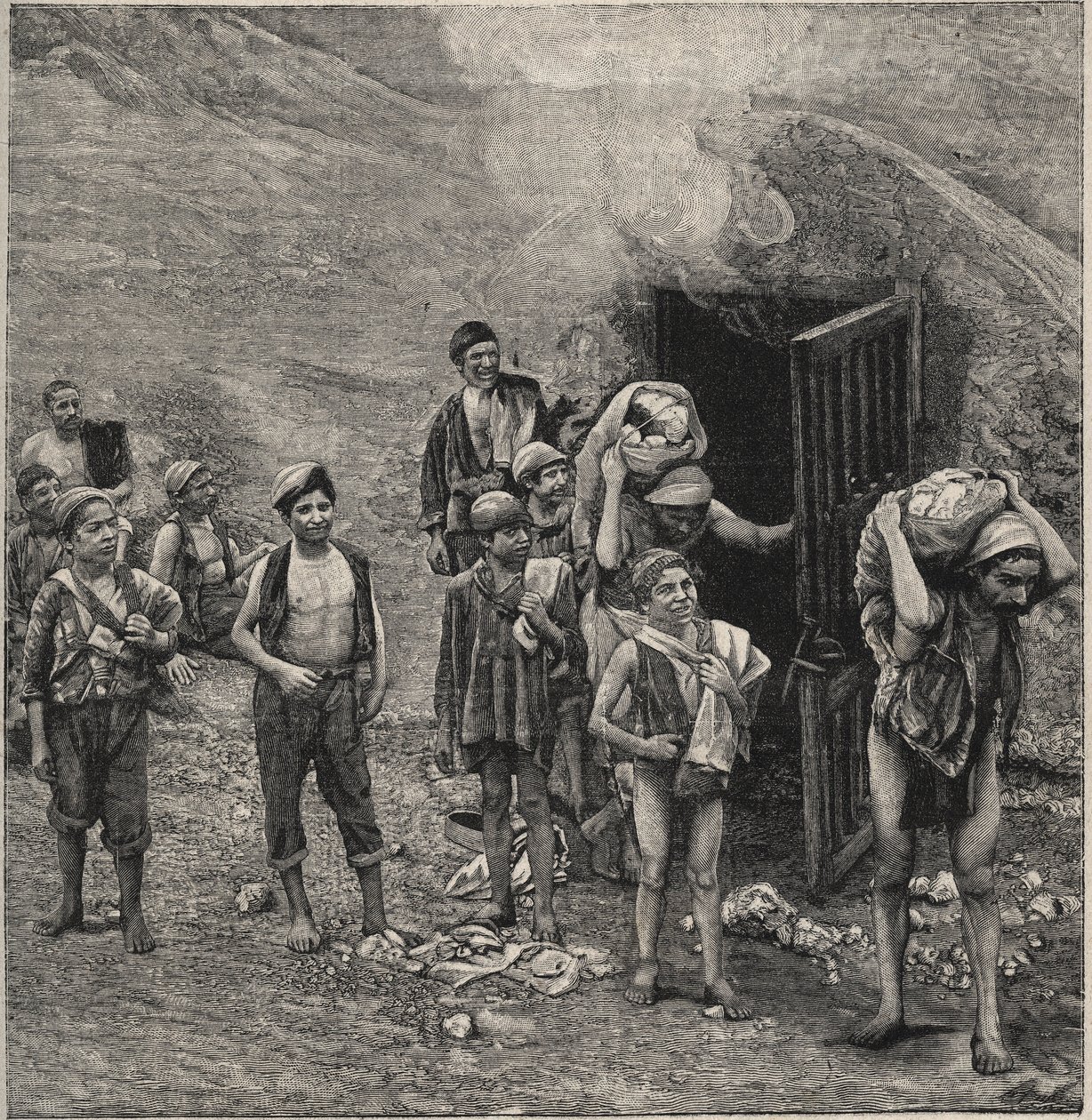 engraving · black and white · engraving · human · sicilian · labour · minor · sicily · abcdef · italian italian italian italian italian · bianchetticor · mine · sicilian · Private Collection / Bridgeman Images |