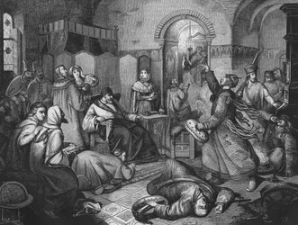 On the last day of Ivan IV the Terrible (1530-1584), tsar and great prince of Russia, beside him his beautiful daughter. (engraving of 1860)(On the last day of Ivan IV the Terrible (1530-1584), tsar and great prince of Russia, beside him his beautiful daughter. engraving of 1860.)Unknown artist |