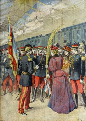 The Return of Colonel Brice Bizot's 200th Regiment(The return of Colonel Brice Bizot's 200th regiment (1848-1929) to Port Vendor, where the ladies of Perpignan gave them a tricolor palm to celebrate their heroism. Engraving in “” Le petit journal”” 5/01/1896. Selva's collection.)Unknown artist |