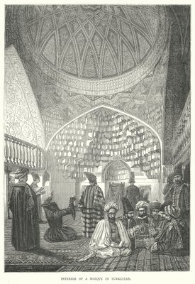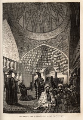 Tatars in prayer, in the Mosque of Schusha (Transcaucasia, Russia). Engraving to illustrate the voyage in the provinces of the Caucasus, by Basile Vereschaguine, in 1864-1865, published in le tour du monde, under the direction of Edouard Charton, Ha(Tatars in prayer, in the Mosque of Schusha (Transcaucasia, Russia). Engraving to illustrate the voyage in the provinces of the Caucasus, by Basile Vereschaguine, in 1864-1865, published in “” le tour du monde””, under the direction of D'Edouard Charton, Ha)Unknown artist |