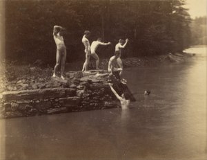 Diving off a rowing boat, c.1910(Diving off a rowing boat, c.1910 (sepia photo))Unknown |