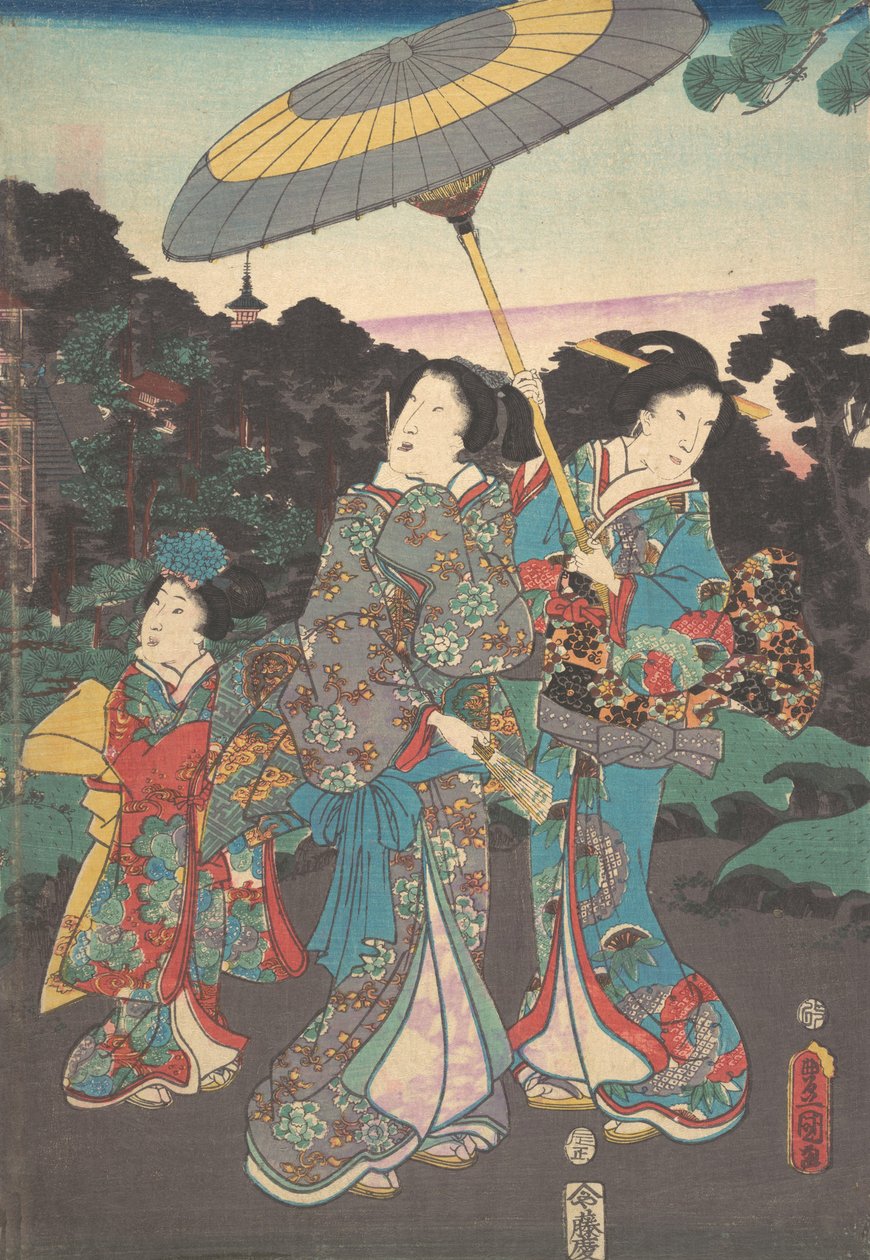 female · women · woman · people · country · pattern · clothes · museum · color · japan · japanese · dress · kimono · kimonos · parasols · parasol · location · umbrellas · umbrella · century · clothing · floral · accessory · accessories · printing · full length · full-length · flowered · colour · patterned · the met · metropolitan museum of art · the metropolitan museum of art · 19th century · nineteenth century · artistic school · edo period · ukiyo-e · woodblock print · utagawa kunisada · kunisada · utagawa · kunisada utagawa · heritage art · polychrome woodblock print · ink and color on paper · toyokuni iii · Heritage Art/Heritage Images |
