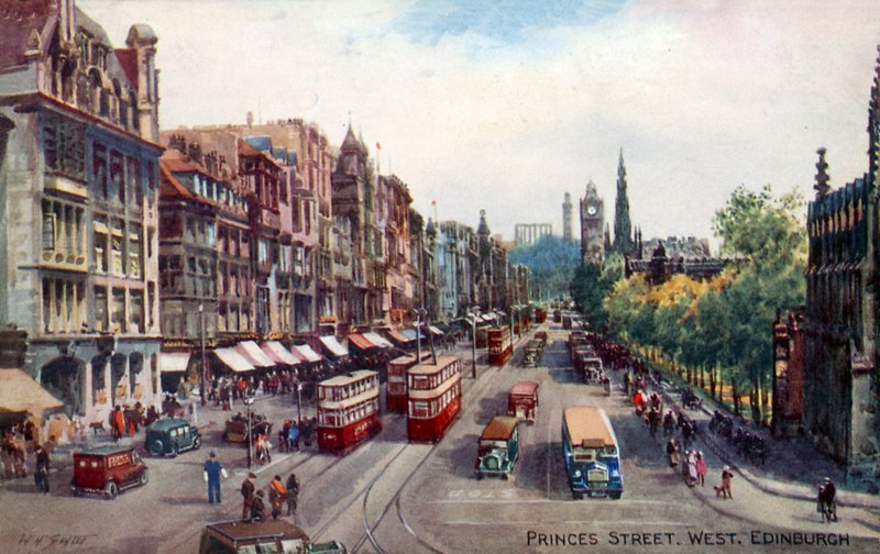 postcard · postcards · princes street · west · edinburgh · Private Collection / Bridgeman Images · / Look and Learn |