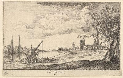transport · transportation · germany · river · religious · landscape · boat · boats · german · arts · country · religion · crane · cranes · geography · cathedral · church · rhine · christianity · baroque · location · century · river rhine · riverbank · 17th century · water transport · black white · black and white · seventeenth century · geographical feature · etching · wenceslaus hollar · vaclav hollar · wenzel hollar · winceslaus hollar · wenceslas hollar · baroque era · hollar · wenceslaus · wenceslaus hollar · heritage art · print · imperial cathedral basilica of the assumption and st stephen · speyer · speyer cathedral · Heritage Art/Heritage Images