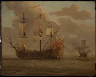 Calm: An English Two-Decker with Sails Loosed Firing a Salute(Calm: an English two-decker with sails loosed firing a salute)Willem van de the Elder Velde |