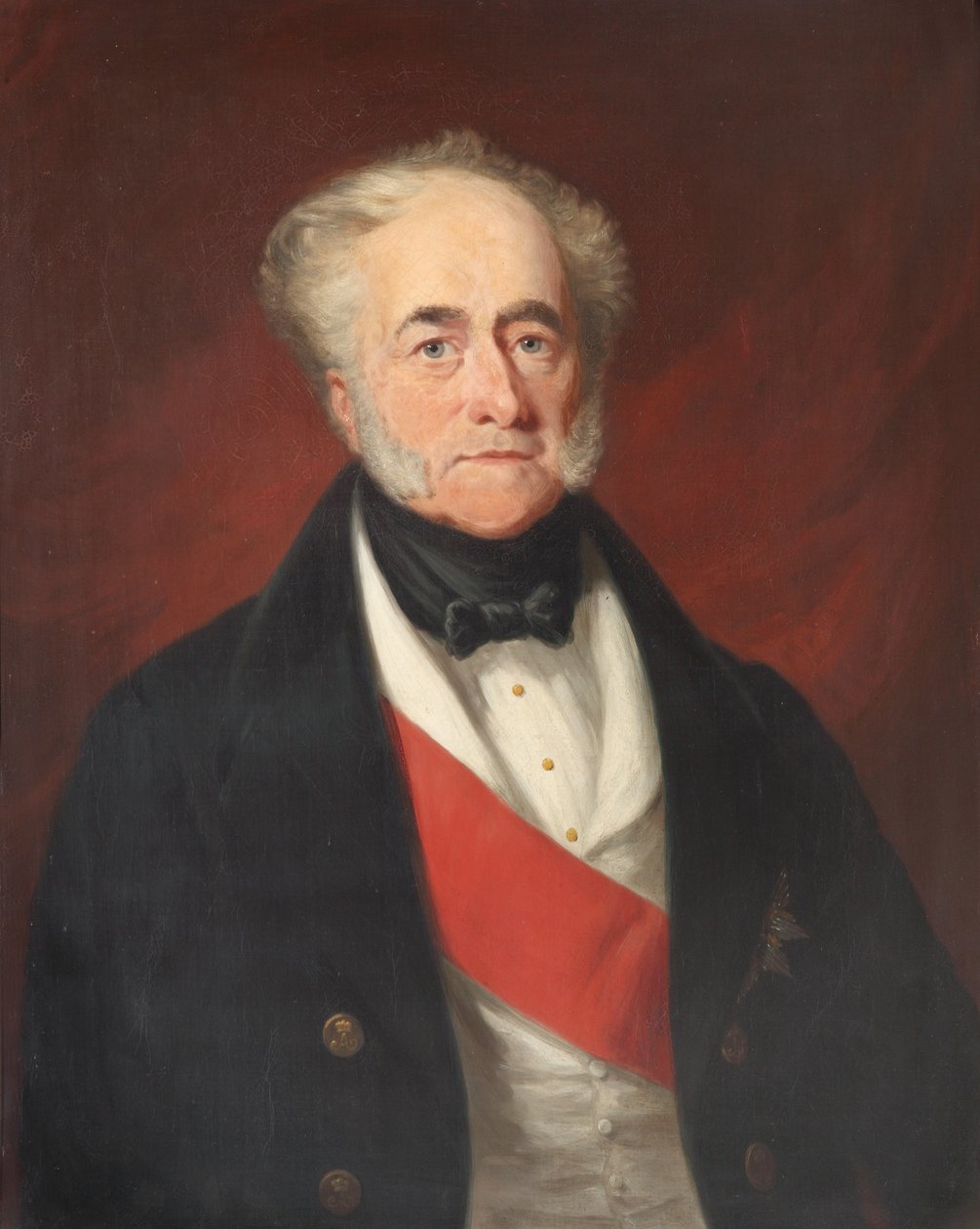 george anson · male · half length · elderly · sideburns · whiskers · muttonchops · regency · cravat · sash · black · order of the bath · Royal Hospital Chelsea, London, UK / Bridgeman Images |