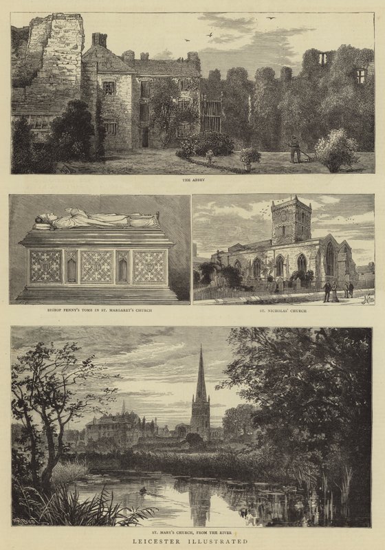 leicester · abbey · bishop pennys tomb · st margarets church · st nicholas church · st marys church · river · architecture · places of worship · Private Collection / Bridgeman Images · / Look and Learn |