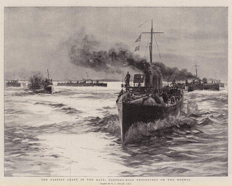 fastest craft · navy · torpedo boat destroyers · medway · ships · naval · royal navy · Private Collection / Bridgeman Images · / Look and Learn |