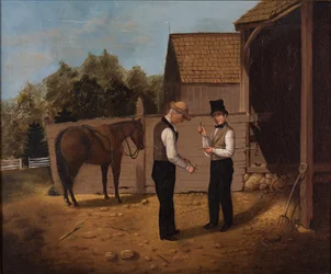 stable · buying · selling · bargain · negotiate · negotiation · rural · barn · Collection of the New-York Historical Society, USA / Bridgeman Images