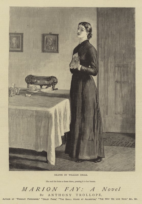 marion fay · novel · anthony trollope · letter · dozen · times · pressing · bosom · literary illustrations · Private Collection / Bridgeman Images · / Look and Learn |