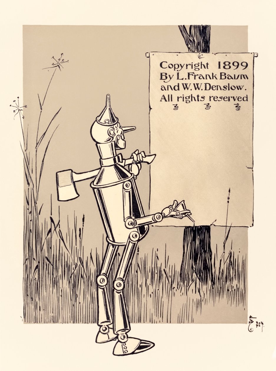 20th century · bestselling · unusual · book · tin man · arts · fantasy · bimetallism · graphic · partnership · story · denslow · the wonderful wizard of oz · shared · color · sign · oil can · wizard of oz · bestseller · fairy tales · tin woodsman · copyright · first edition · fairy tale · books · american · page · childrens · collaboration · lyman frank · publishing · novel · rare · united states · colour · literature · co-held · copyright law · illustration · 1899 · design · usa · baum · Private Collection / Bridgeman Images |